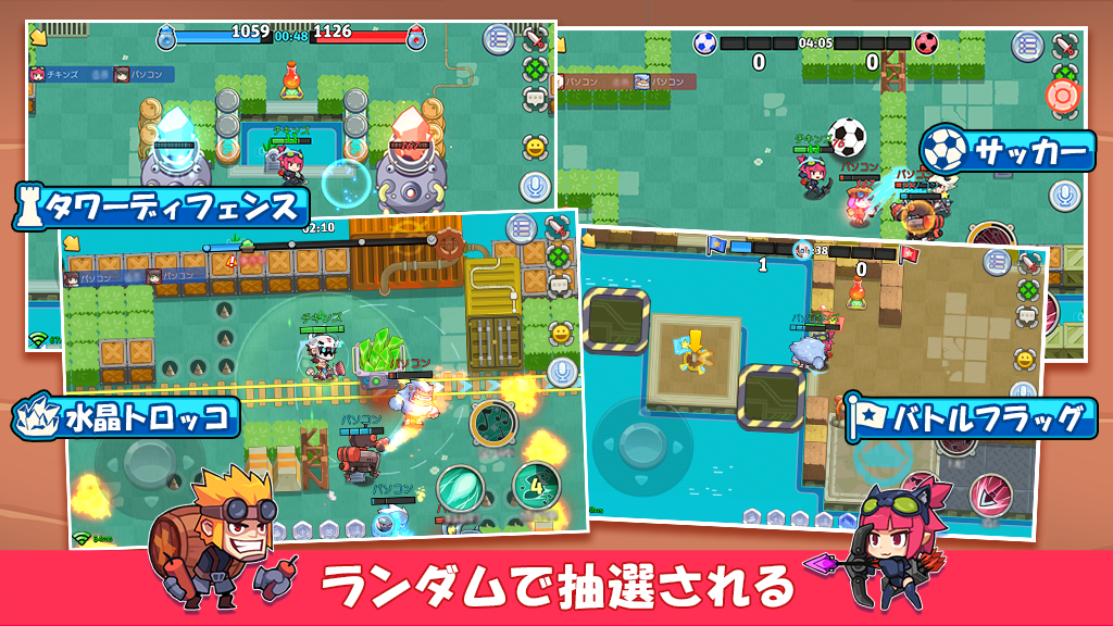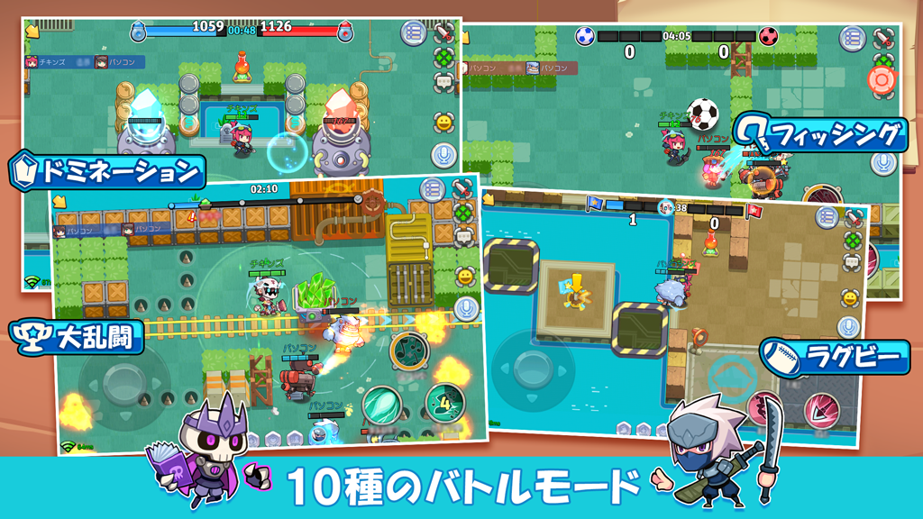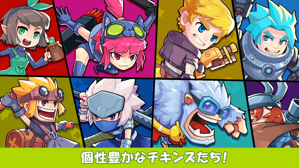3vs3で行うリアルタイム対戦ゲーム!チキンズと呼ばれるキャラを操作し仲間と勝利を目指せ。モードは全10種類の中から抽選、友達と一緒に遊ぶことで更に楽しめます。
