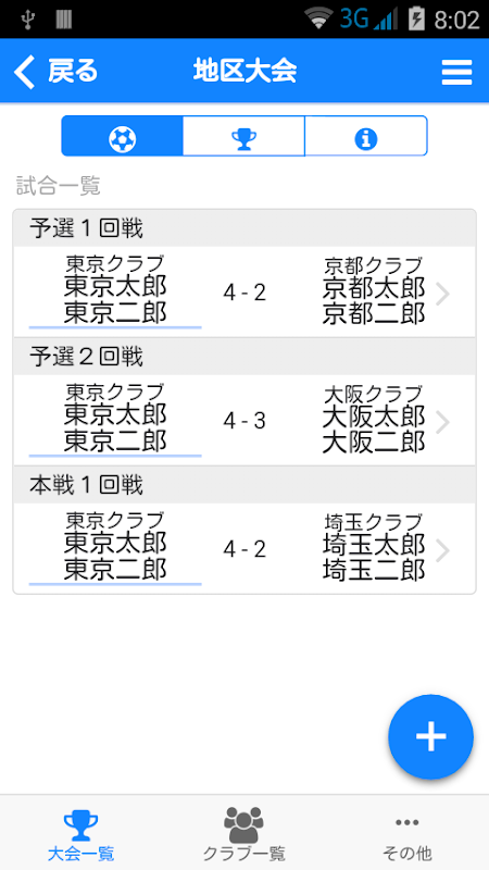 ・大会の試合・成績の表示, クラブ・選手の表示できます。