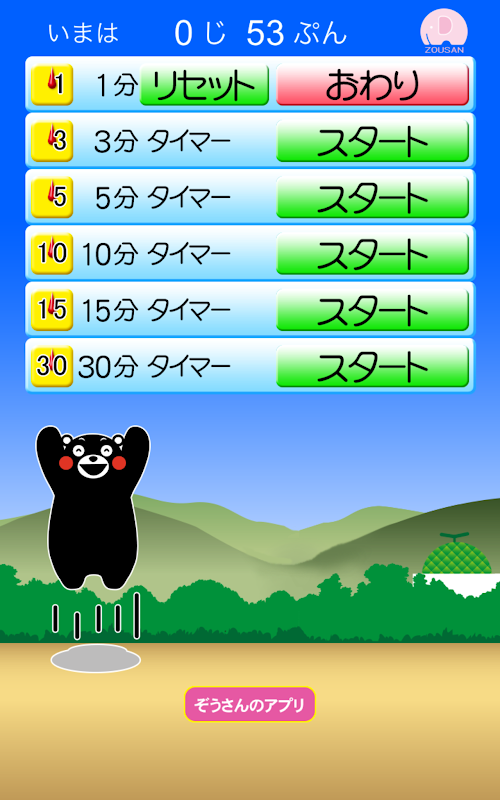 熊本県PRキャラクター「くまモン」の簡単タイマーです。