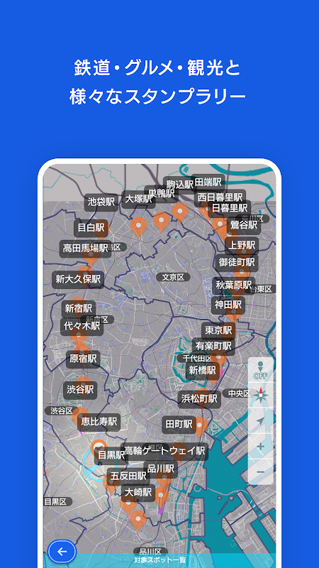 ・ स्टेशनों, ऐतिहासिक स्थलों, प्रसिद्ध स्थानों और विभिन्न स्थानों पर दुकानों पर स्थापित "स्पॉट" पर चेक इन करें। स्टाम्प रैली का आनंद लेते हुए आप स्थान की उत्पत्ति, प्रसंग और जानकारी भी प्राप्त कर सकते हैं।