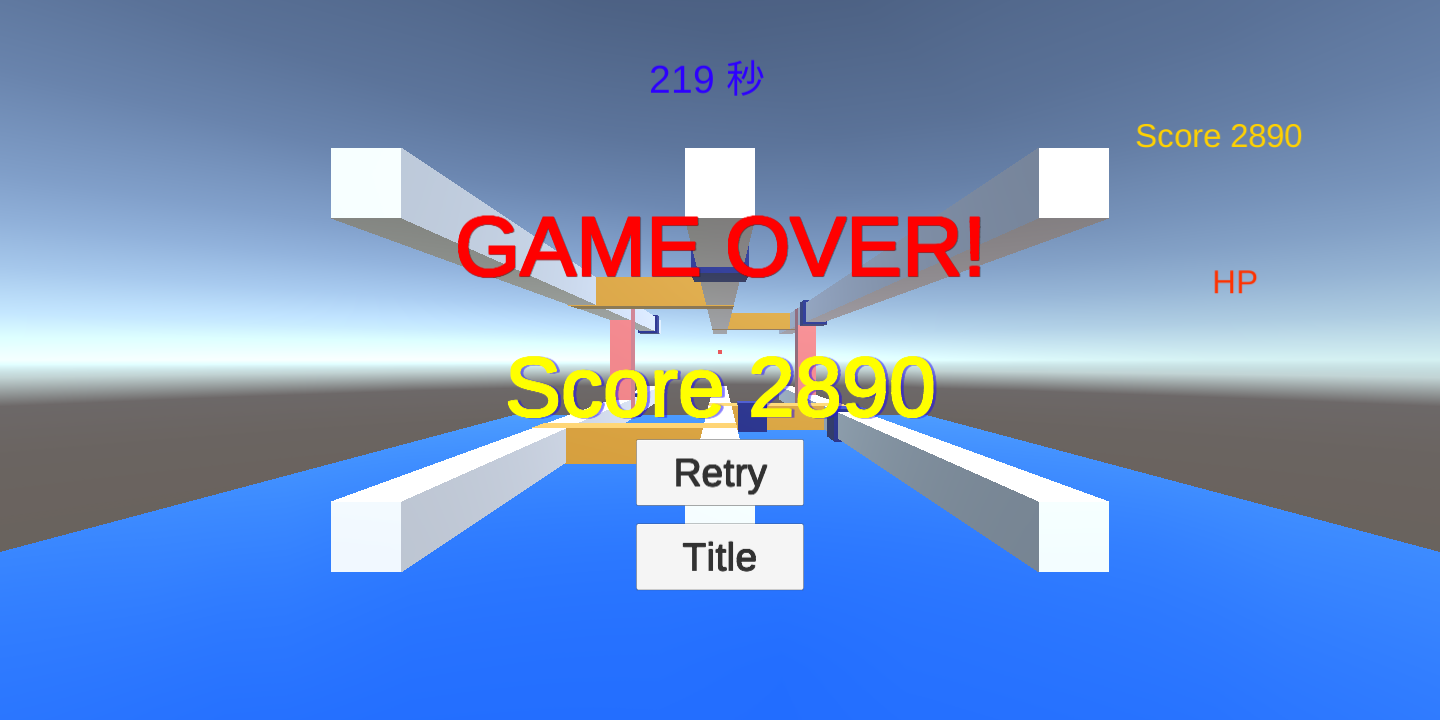 ダメージを受け、HPが0になるとゲームオーバーです。