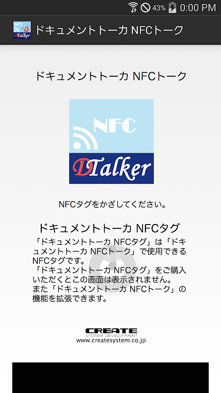 「ドキュメントトーカ NFCトーク」はNFCタグのデータを作成し、それを読み取って様々な動作をおこないます。