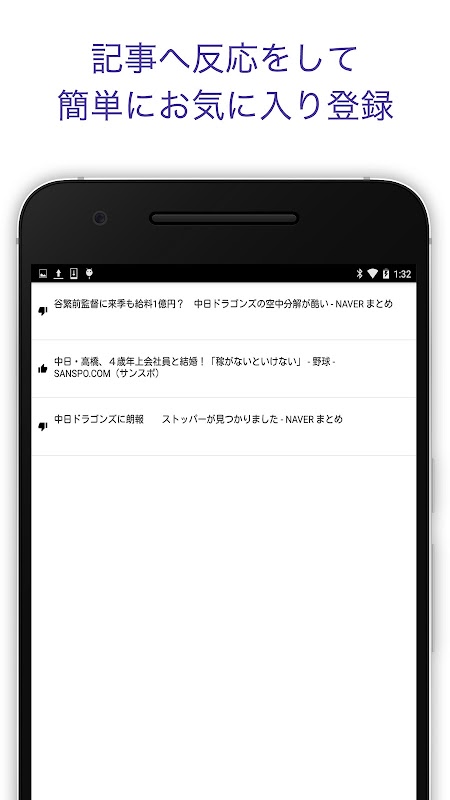 - 「ニュース」ではドラゴンズの最新ニュースが得られます。