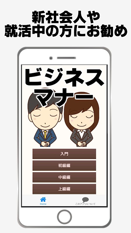 恥をかかないためのビジネスマナー学習アプリです。社会人として重要な知識を厳選して集録しております。新社会人、面接対策や早く昇給されたい方などにもおススメ。