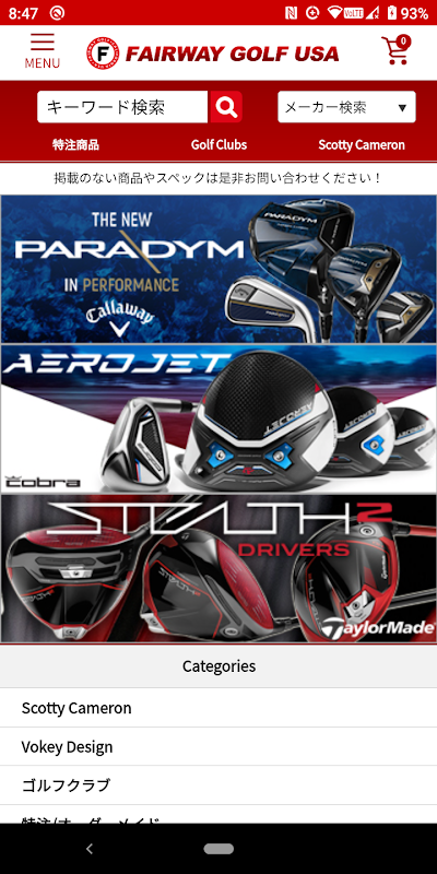 फेयरवे गोल्फ यूएसए शॉपिंग ऐप। आप अपने स्मार्टफोन से फेयरवे गोल्फ यूएसए में आसानी से खरीदारी कर सकेंगे।