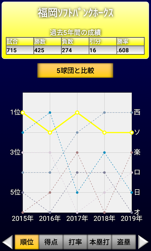 球団毎の各成績の遷移や他球団との比較、選手毎の成績の遷移が