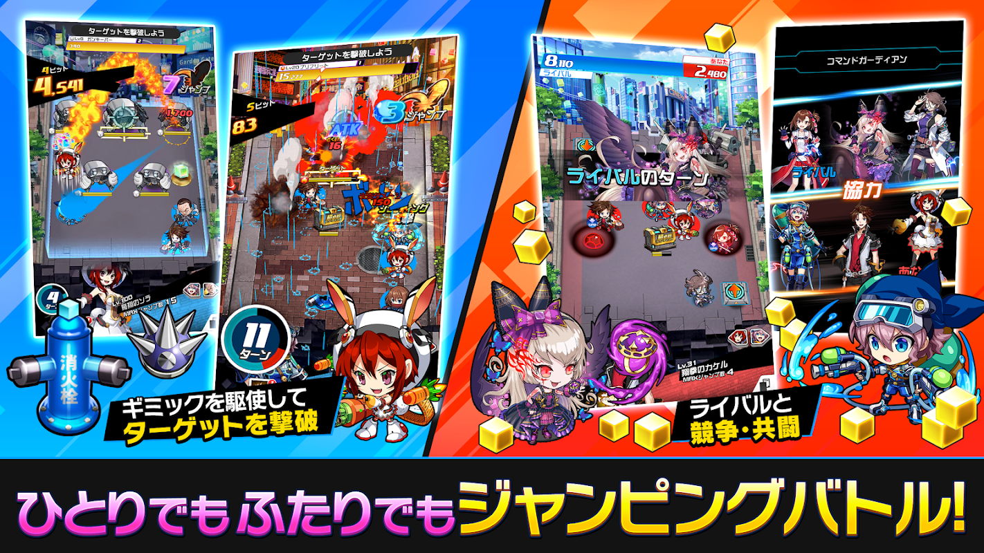 एक उंगली का आसान संचालन एक उत्साहजनक लड़ाई बनाता है! दोस्तों के साथ लड़ो! प्रतिद्वंद्वियों के साथ प्रतिस्पर्धा! कूदते कार्रवाई आरपीजी "हॉप स्टेप जम्पर"