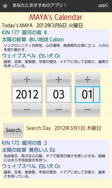 ウィジェットをタッチすれば、指定日のマヤの日をすぐに検索できます。