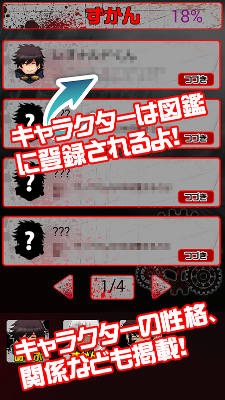 キャラ図鑑に登録され集めたキャラの性格、関係なども掲載!