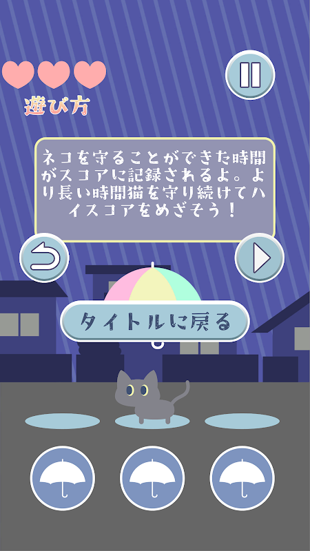 एक सरल सहनशक्ति का खेल जहां आप एक बिल्ली को बारिश से बचाने के लिए छाते का उपयोग करते हैं जो स्वतंत्र रूप से चलती है!