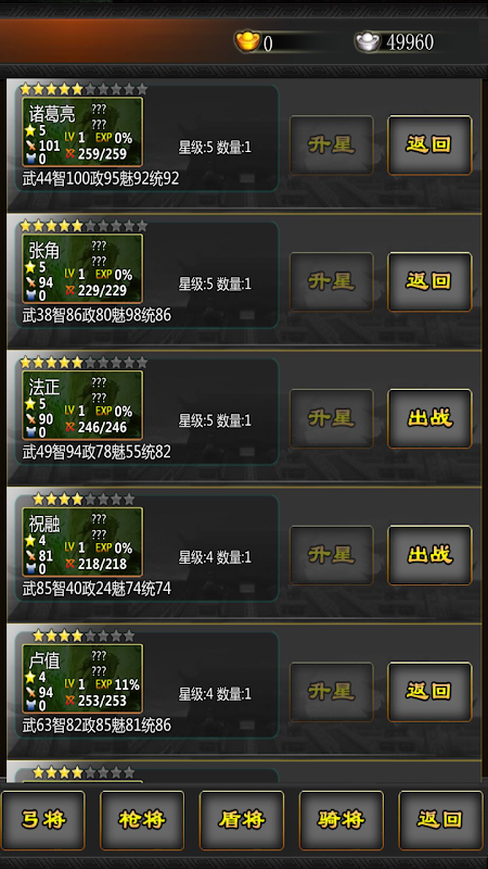 प्लेसमेंट सिस्टम: आंतरिक मामलों के उच्च आकर्षण वाले लोगों को विकसित करें, युद्ध के लिए उच्च बुद्धि और बल का उपयोग करें, और सैन्य कमांडरों को यथोचित रूप से अधिकतम करने के लिए रखें
