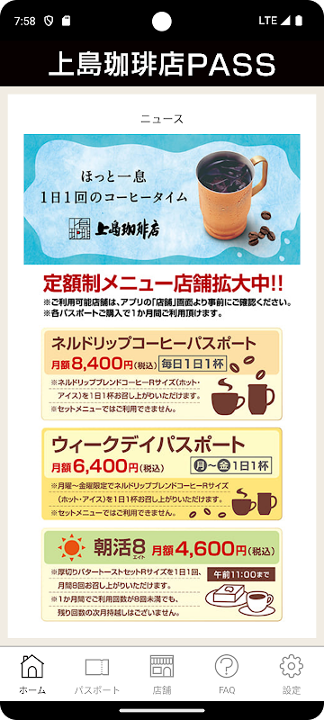 上島珈琲店PASS-コーヒーの定額制パスポート 4.2.2