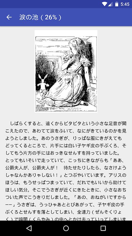不朽の名作「不思議の国のアリス」の原作が全文読めるアプリです。