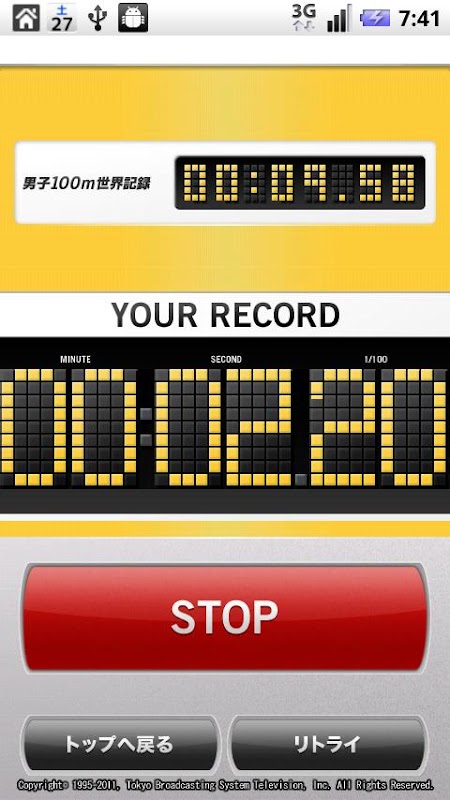 ②世界記録だと思うタイミングでストップウォッチを止めます。