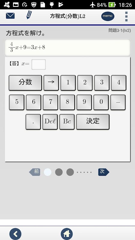 समीकरण गणना समस्या, पूर्णांक, दशमलव, fractional, कोष्ठक समस्या, एलवी 4 के लिए मूल समस्या के एलवी 1 से 380 से अधिक समस्याएं हैं जो थोड़ा मुश्किल है।