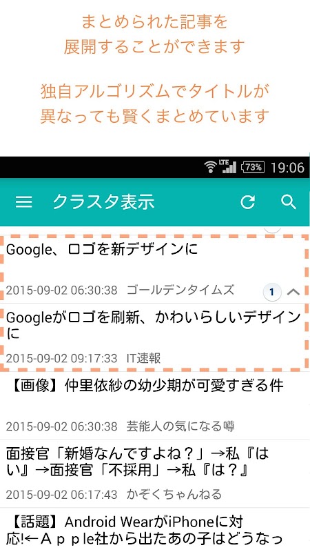 चूंकि क्लस्टर विस्तार प्रदर्शन फ़ंक्शन जो शुरुआत से सभी लेख प्रदर्शित करता है, वह भी उपलब्ध है, पारंपरिक 2-चान सारांश एप्लिकेशन के समान ऑपरेशन संभव है।