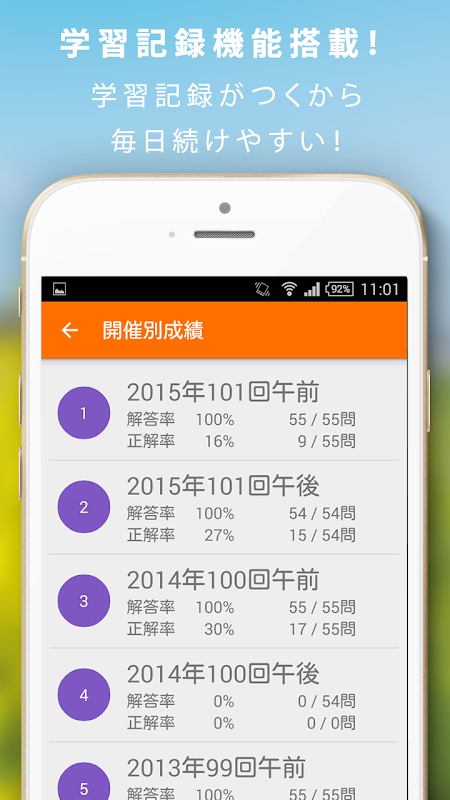 保健師の暗記カード+過去問 解説付。マイ暗記カードの作成、開催別、分野別、苦手な問題などから独自の問題セットを作成でき重要な項目を徹底的に復習できます。