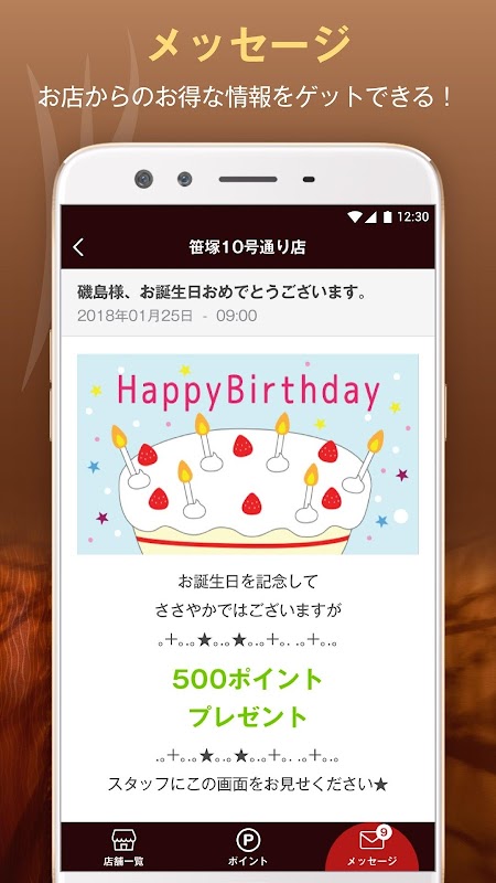 不定期にHealth & Beautyグループからメッセージが届きます。新メニューやコースの情報の他、お得なクーポンが届くこともあるかも?!