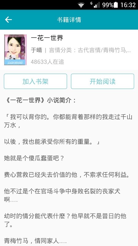 本小说阅读器界面间洁,操作简单,美观,功能丰富。无需下载即可阅读的免费言情小说,方便快捷的书签收藏,自动记录阅读位置,让您再也不会忘记喜欢的小说了