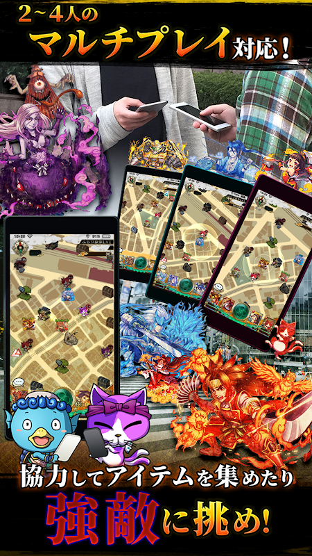 家の近所や通勤通学の道中を、実際に歩き回って、仲間を集め、アイテムを集め、敵と戦い、お話を進める…まさにリアル連動RPGなのです。