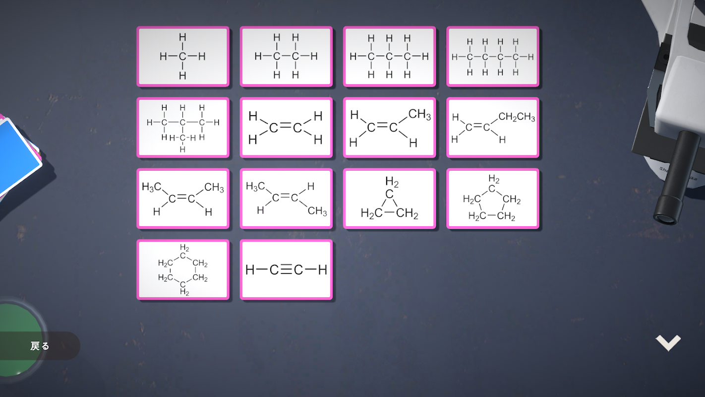इसमें हाइड्रोकार्बन, कार्यात्मक समूहों वाले यौगिकों और बेंजीन रिंग वाले यौगिकों जैसे फार्मास्यूटिकल्स के संरचनात्मक सूत्रों पर ध्यान केंद्रित करने वाले कार्ड सेट की एक विस्तृत श्रृंखला शामिल है, जो आपको सूची को देखते समय दृष्टि से अध्ययन करने की अनुमति देती है।