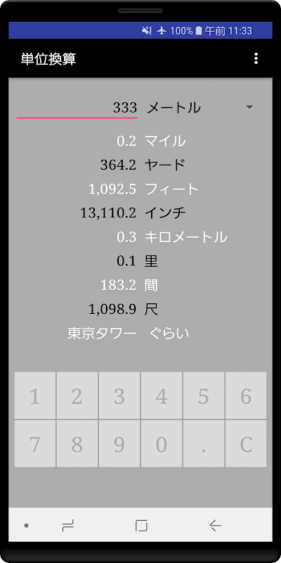 सरल इकाई रूपांतरण अनुप्रयोग। केवल नंबर दर्ज करने के लिए!