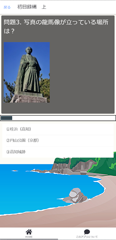 幕末・明治維新を駆け巡った龍馬に関する3択クイズを、簡単なものからマニアックなものまで全100問用意しました(不定期ですがクイズは増やしていく予定です)。