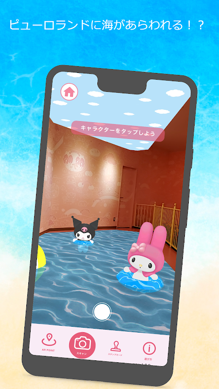Sanrio Puroland एक ऐप जो आपको पार्क में चौकियों पर अपना स्मार्टफोन पकड़कर पात्रों से मिलने की अनुमति देता है।