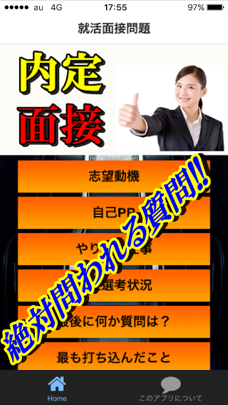 このアプリでは自己?、志望動機はもちろん、面接官が思わず質問