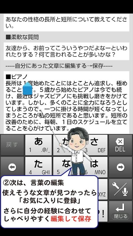 お気に入りに登録した文章を、自分に合うように編集・保存できます。