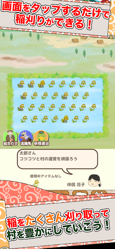 *यदि खेल शुरू करने के बाद चावल नहीं उगता है, तो कृपया स्क्रीन को कई बार बदलें और चावल के खेत की स्क्रीन प्रदर्शित होने तक थोड़ी देर प्रतीक्षा करें।