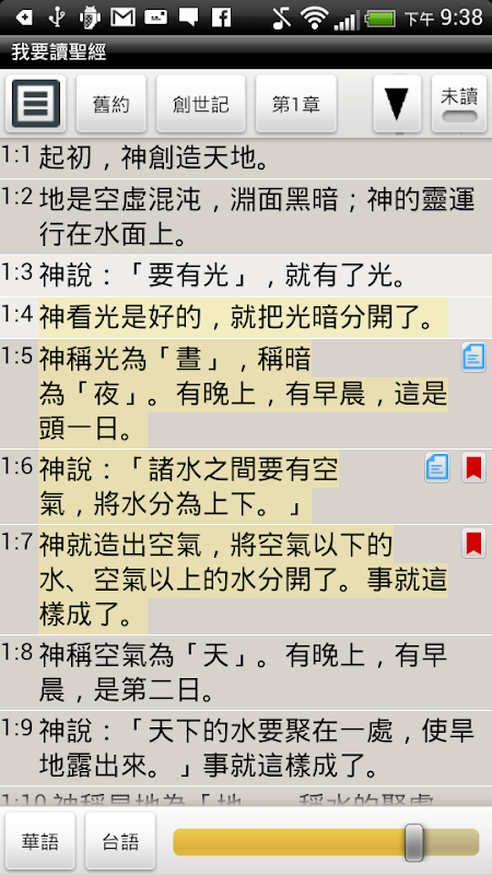 您可以利用此APP來快速翻閱聖經,於喜歡的章節加上書籤、畫上重點標示、甚至做筆記。