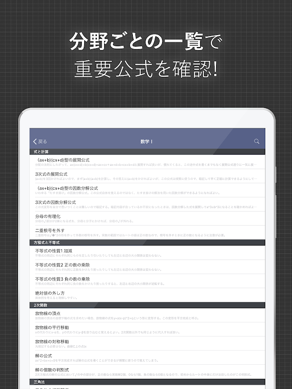 数学公式集(中学数学・高校数学の公式解説集) 3.7.0