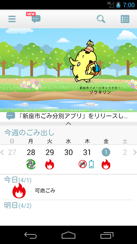 ごみに関するお知らせや市のイベント情報などを確認することができます。