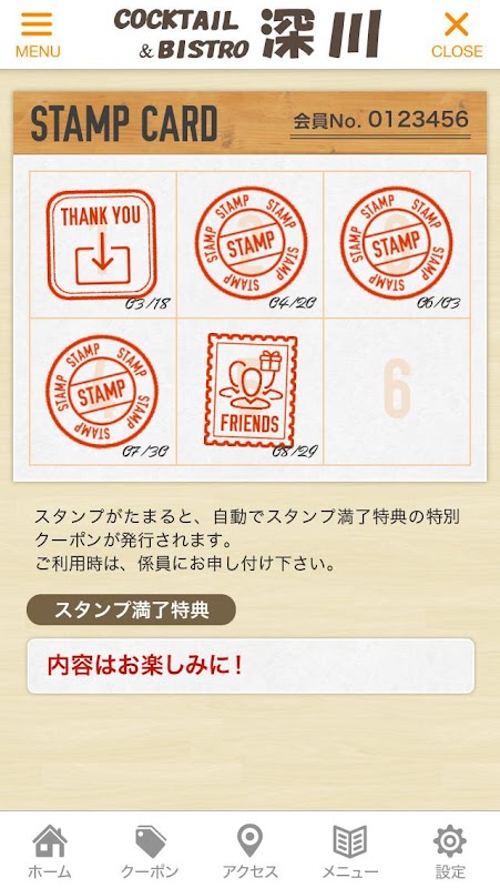 このアプリでは、カクテル&ビストロ深川の色々な情報やアプリユーザー限定のお得なサービスが手に入ります!