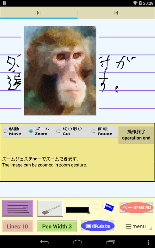 画像に対して移動/ズーム/切り取り(四角形・楕円)/回転の操作が行えます。