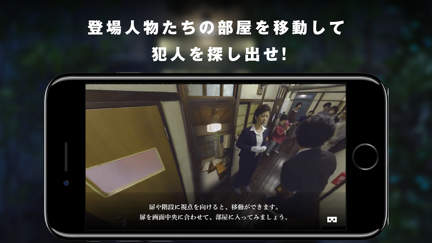 ストーリーは、古いアパートの一室で起こった密室殺人事件。犯人はこのアパートの中にいる! それぞれの登場人物の部屋を移動して犯人を探し回る、マルチストーリー本格VRドラマ。犯人は、360度バーチャルリアリティの迷宮に逃げ込んだ! 果たして誰なのか? 犯人がわかっても決して人には言わないでください (SNSも含む)!