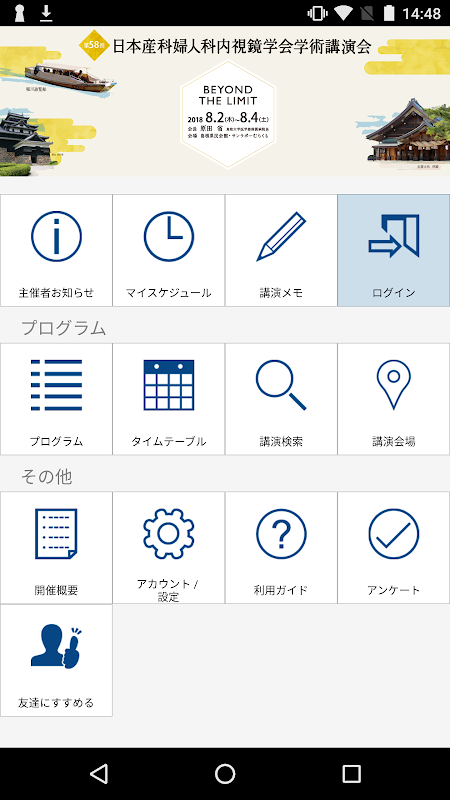 यह आवेदन "जापान प्रसूति एवं स्त्रीरोग विज्ञान इंडोस्कोपिक सोसायटी व्याख्यान सार एप्लिकेशन (JSGOE)" का एक इलेक्ट्रॉनिक सार अनुप्रयोग है।