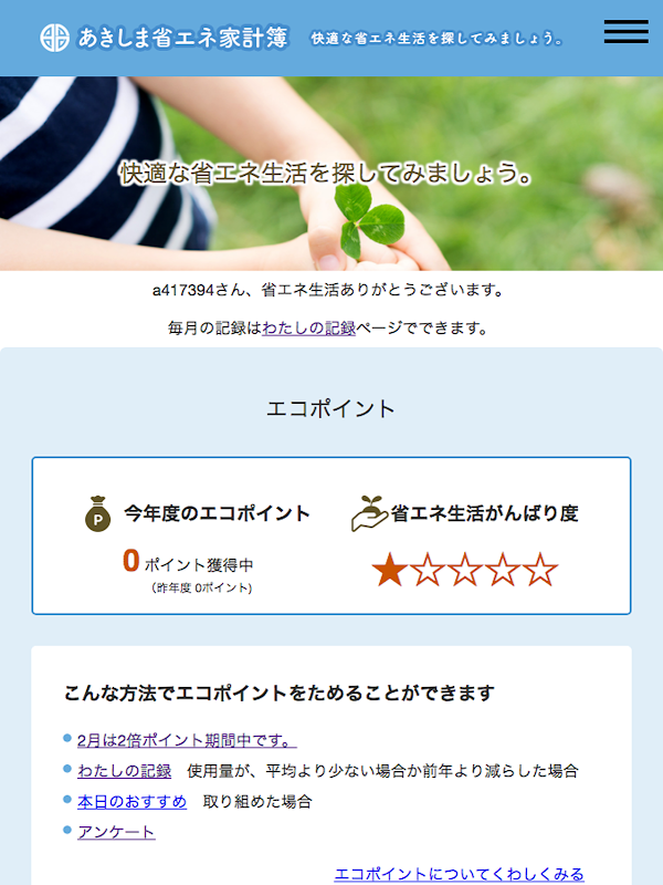 また単に記録するだけでなく、あなたの家庭にあったエコチェックを通じて、より光熱費を減らすこともできます。取り組みに応じて、ポイントがたまるようになっていたり、順位が表示されるようになっていたりしますので、ぜひチャレンジしてみてください。