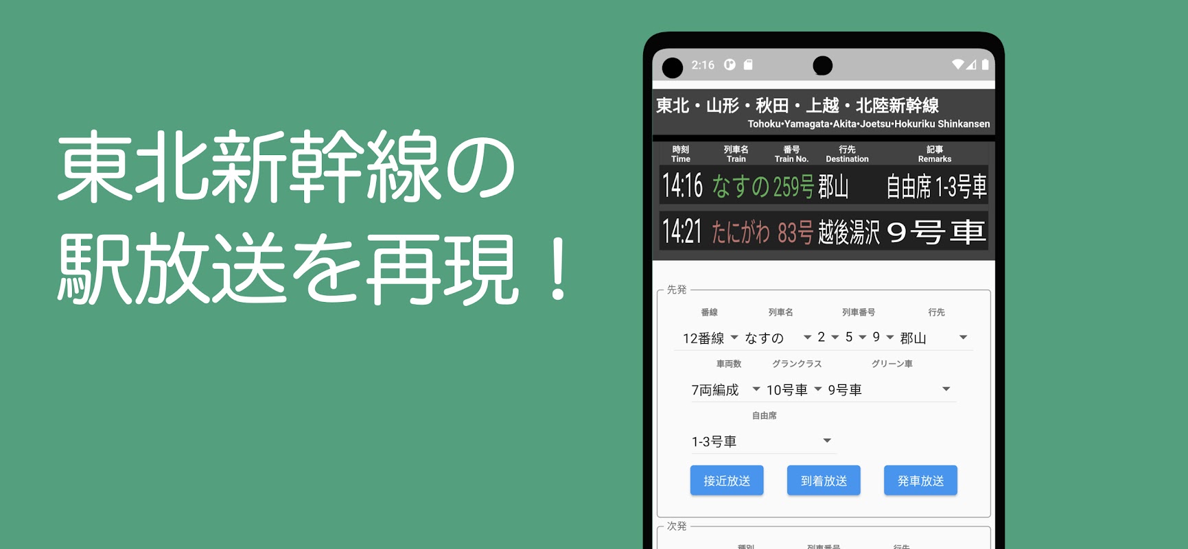 आप Tohoku Shinkansen और Joetsu Shinkansen पर नासुनो और तनिगावा की ट्रेन और गंतव्य चुन सकते हैं।