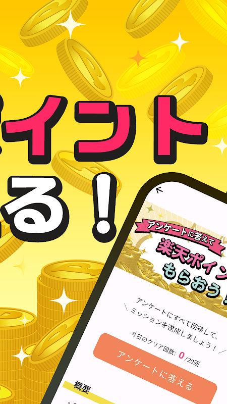 सरल सर्वेक्षणों का उत्तर देकर हर दिन राकुटेन अंक अर्जित करें! आप केवल अपने स्मार्टफोन को टैप करके आसानी से अंक अर्जित कर सकते हैं। यह एक पोई-कात्सु ऐप है जिसे आप आसानी से इस्तेमाल करना शुरू कर सकते हैं।