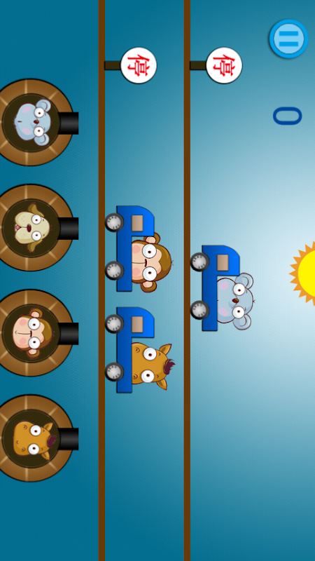 这是一款简单的考验反应和眼力的休闲游戏,根据卡车上的动物,点击相对应的大炮进行射击,把动物们打飞。