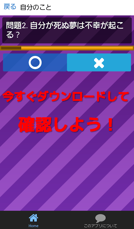 このアプリは、◯×で簡単に夢の吉凶が判断できます!