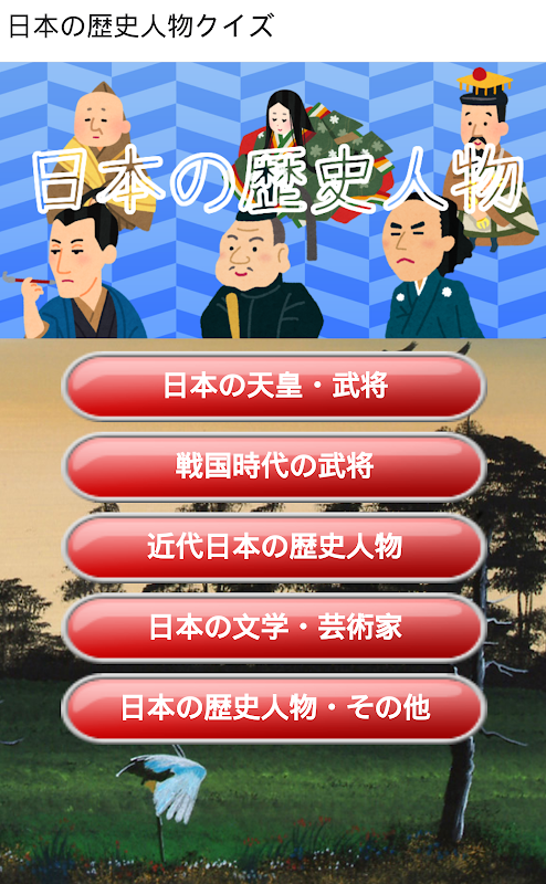 日本の歴史人物をどれだけ知っていますか?楽しくクイズを解きながら、いつの間にか日本史の勉強もできちゃう無料アプリです。