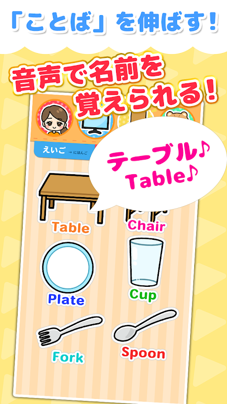 ऑडियो चलाने के लिए चित्रण को स्पर्श करें. जापानी ⇔ अंग्रेजी स्विचिंग फ़ंक्शन शामिल है।