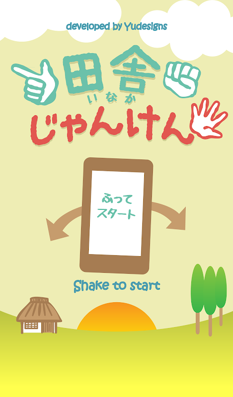 「田舎じゃんけん」は、スマートフォンを振るだけで、画面にじゃんけんの「グー」、「田舎ちょき」、「パー」を出すことができるアプリです。