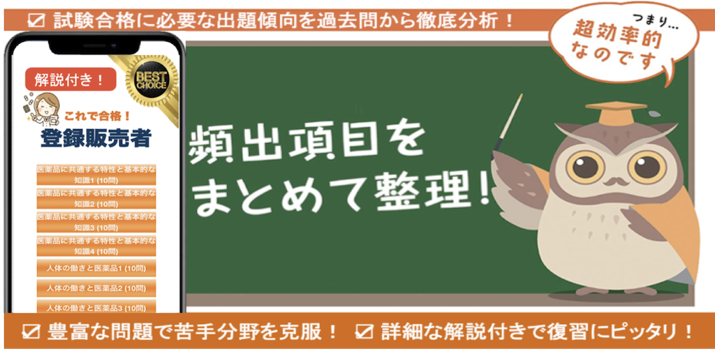 「薬事関係法規・制度」では、薬事関係法規を遵守して医薬品の販売等ができるよう、一般用医薬品の販売に関連する法令や制度のしくみを理解しているかという点が問われます。法規は改定されますので、最新情報を常にチェックしておきましょう。