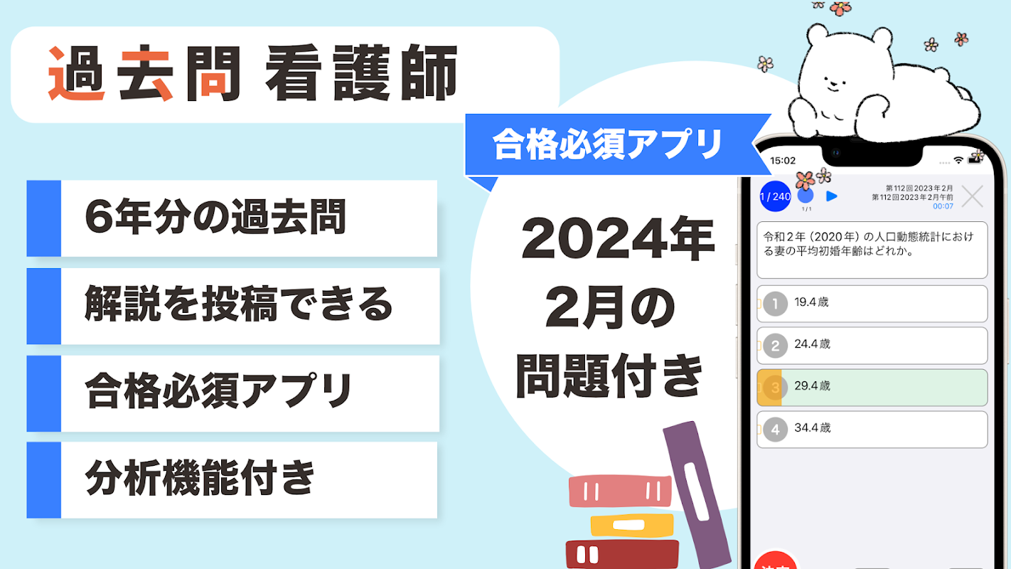 नर्स फरवरी 2024 प्रश्न! मॉक टेस्ट फ़ंक्शन शामिल है! राष्ट्रीय नर्सिंग परीक्षा उत्तीर्ण करने के लिए एक आवश्यक ऐप। आप नर्स बनने के लिए कभी भी, कहीं भी पढ़ाई कर सकते हैं। नर्सों के लिए एक निःशुल्क ऐप जो स्पष्टीकरण पोस्ट करता है।