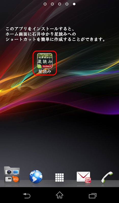 जब आप इस आवेदन को स्थापित, ब्राउज़र, आप आसानी से "Yukari इशी Hoshiyomi" का उपयोग कर सकते हैं घर स्क्रीन करने के लिए "Yukari इशी Hoshiyomi" के संस्करण के लिए एक शॉर्टकट बना सकते हैं।