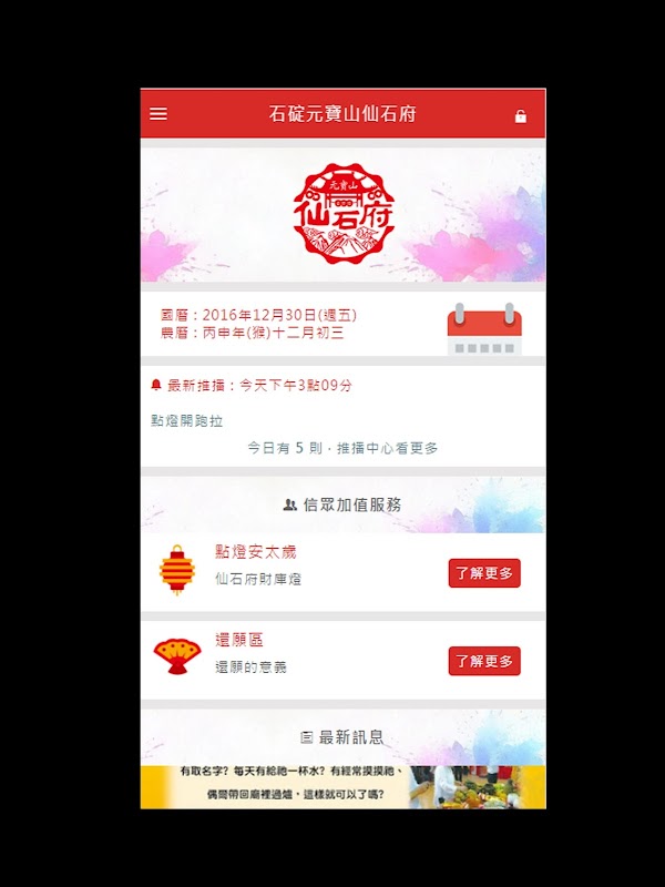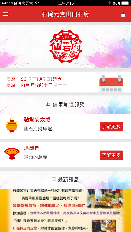APP全新推出 - 線上信眾加值服務 - 即時便利的點燈安太歲服務 - 廟宇最新資訊、慶典法會訊息 - 即時資訊推播服務 - 廟信即時通